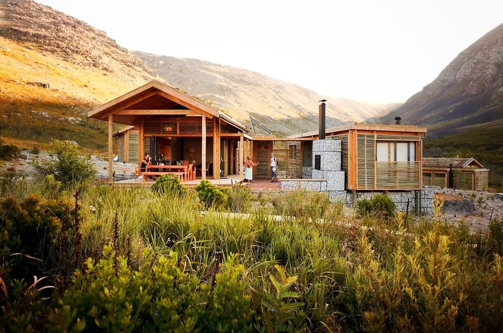 Each cabin seamlessly blends into the natural environment of the Overberg. The cabins feature two rooms, shared between two guests or a couple, each with a private bathroom.